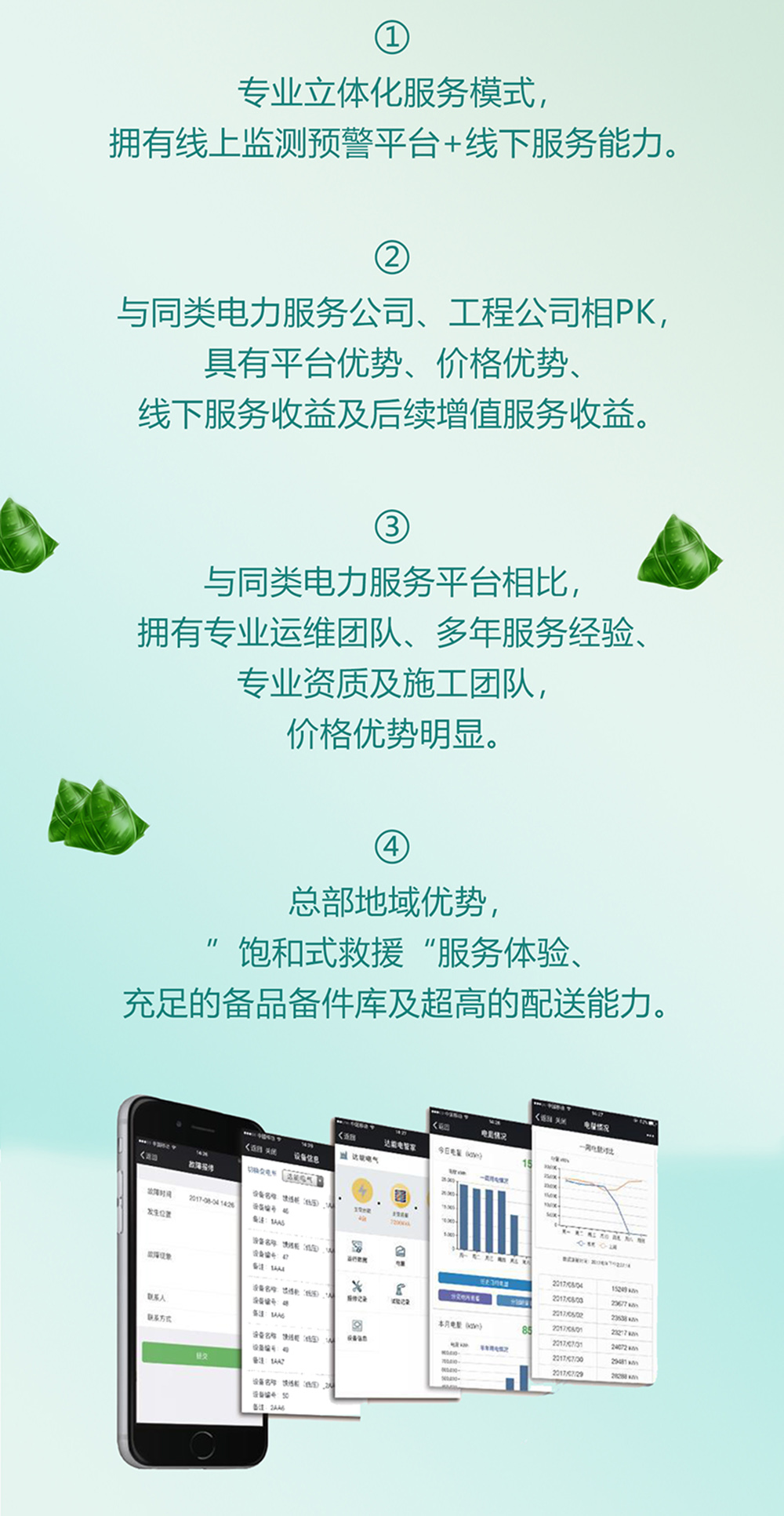 leyu中国电管家利用物联网、大数据、云平台,结合专业电力运维团队,构建一站式电力运维平台,让用户在电力运行保障及维护过程中体验专业高效、精准规范、安全经济的服务。数字引领,智慧运维,线上监测预警+线下服务能力,提供一站式解决方案及与“粽”不同的电力运维服务!leyu中国电管家—您身边专业的电力服务专家。端午佳节,leyu中国电管家祝您端午安康!