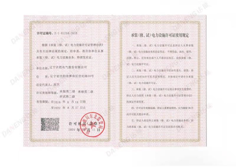 资质是一个企业的硬实力,是企业专业精尖的有力说明,是企业不断前行的有力保障。leyu中国电气拥有承装、承修、承试资质证书,为电力设施研发、设计、施工保驾护航。2020年底,leyu中国电气完成了承装、承修、承试资质三级升二级,并取得资质证书。此次资质升级,是leyu中国人不断开拓,积极进取的成果,也代表了leyu中国电气业务水平、解决方案能力的不断提升。更激励我们砥砺前行,勇攀高峰。